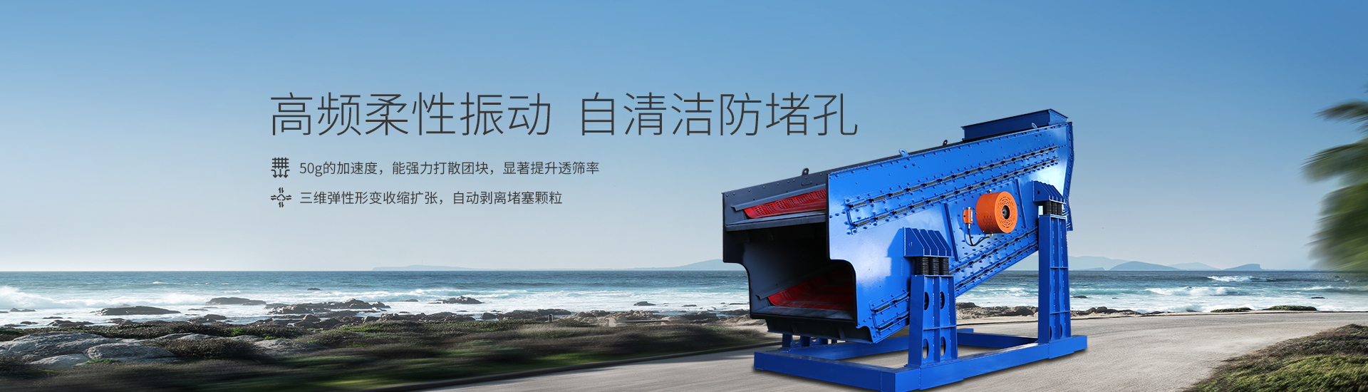 | 篩面高頻馳張運動,能夠傳遞給物料50g的加速度,有效解決粘濕物料的篩分,確保篩孔不堵塞。 | 采用偏心飛輪式單軸慣性激振器,激振器軸承設(shè)計使用壽命20000小時以上,可通過調(diào)整偏心飛輪的角度來調(diào)整激振器激振力大小。 | 高性能馳張篩板具有較好的耐磨性和優(yōu)良的物理性能,具有較長的使用壽命和較好的篩分效果。 | ||