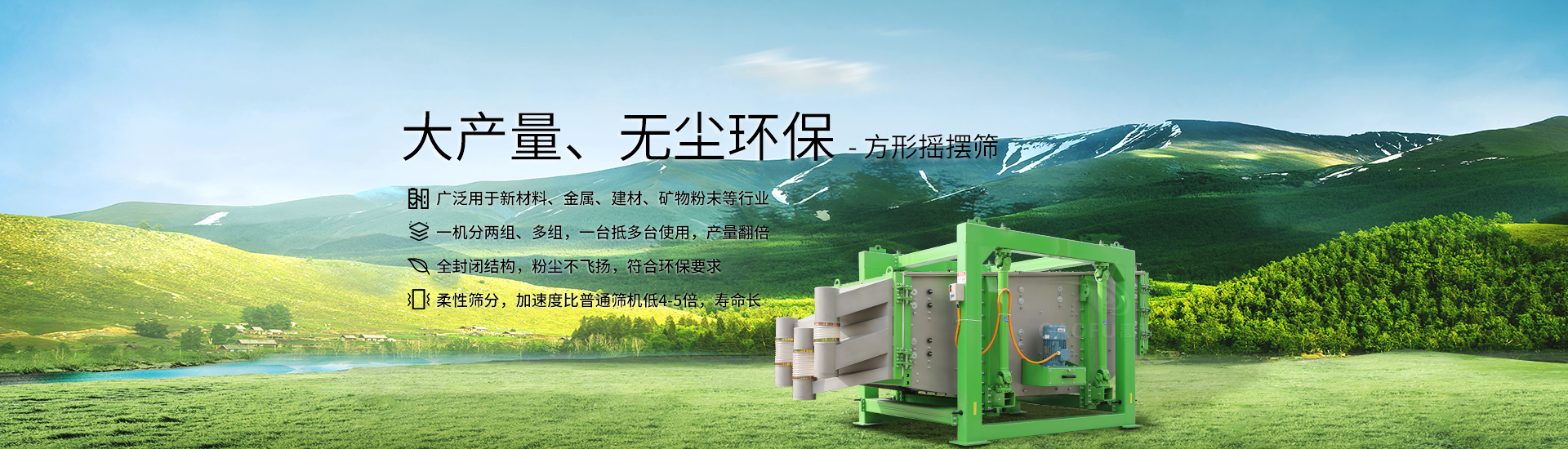 | 篩分量大,多層分級設(shè)計,一機分兩組或多組,一臺抵多臺使用,產(chǎn)量翻倍。 | 高達(dá)5倍的單位面積產(chǎn)出;準(zhǔn)確到6級分離,篩分效率高達(dá)90%-99%。 | 大型靜電噴塑工藝,設(shè)備更加美觀、耐磨、防銹,噪音低<75分貝,優(yōu)化重理均衡,地基動態(tài)負(fù)荷低。 | ||