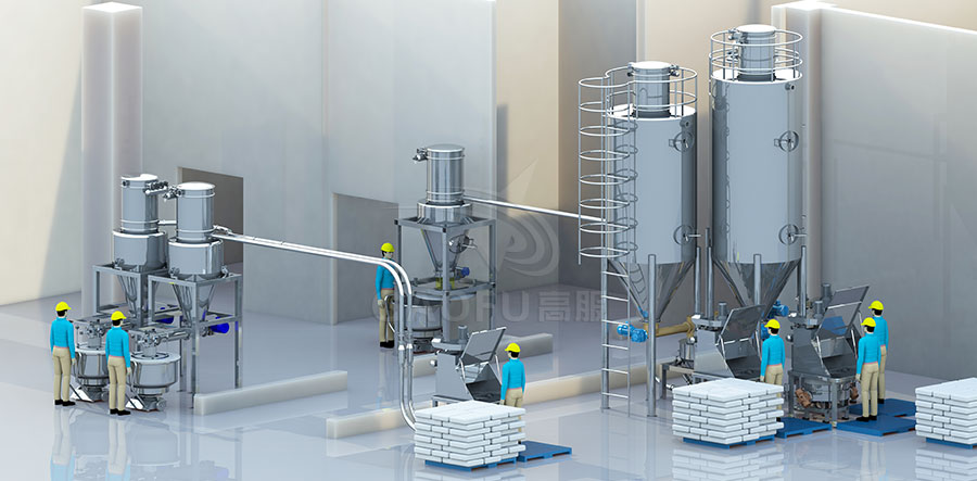 | 專業(yè)設(shè)計(jì)團(tuán)隊(duì),提供輸送參數(shù),輸送過程物料損耗小。 | 全密閉式管道輸送,無塵、不易泄露,保證車間整潔。 | 自動(dòng)化程度高,省時(shí),省力,生產(chǎn)效率高。 | ||