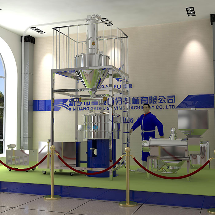 智能無塵篩分系統(tǒng)由篩分機(jī)、負(fù)壓源、集料器、給料機(jī)、除塵器和控制器六大部件組成。其工作原理是:由負(fù)壓吸管直接從原料包中吸取原料,送入集料器,通過給料機(jī)定量將原料均勻供給篩分機(jī)篩分(傳統(tǒng)的人工上料、加料不均衡和粉塵問題得到控制)。篩分產(chǎn)生的揚(yáng)塵和接料產(chǎn)生的粉法均被負(fù)壓氣流自動吸走。工作交接時,可用系統(tǒng)自帶的清理器將運(yùn)輸產(chǎn)生的落地原料、料包死角存料、人為或運(yùn)輸產(chǎn)生的散落原料收集到回料器,節(jié)約原料。整個系統(tǒng)的控制由鍵盤實現(xiàn),實現(xiàn)了篩分智能化。